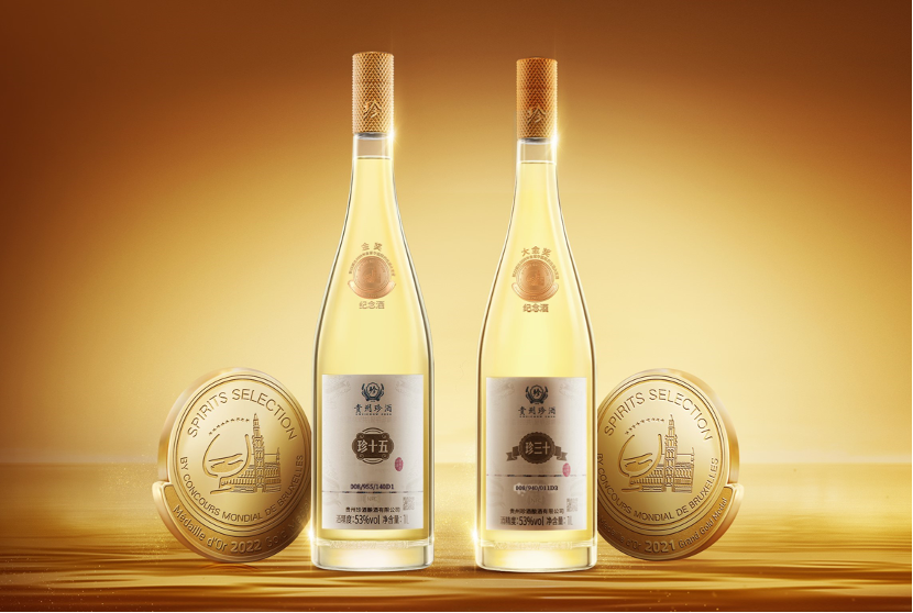 為了紀念珍酒·珍三十、珍酒·珍十五憑借非凡品質,在第22屆比利時布魯塞爾國際烈性酒大獎賽分別獲得“大金獎”和“金獎”的極高榮譽。珍酒還特別推出了高端光瓶酒系列和豪華版系列的珍酒·珍三十(大金獎紀念酒)、珍酒·珍十五(金獎紀念酒)。